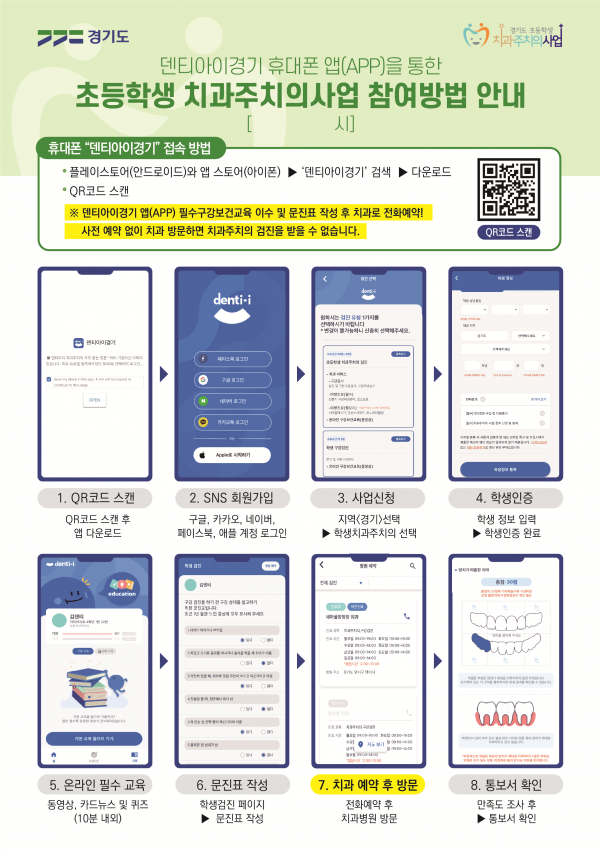 참여자들은 ‘덴티아이’앱에서 구강보건교육을 이수하고 문진표를 등록한 후 내원을 원하는 치과에 직접 전화로 예약을 하면 된다.