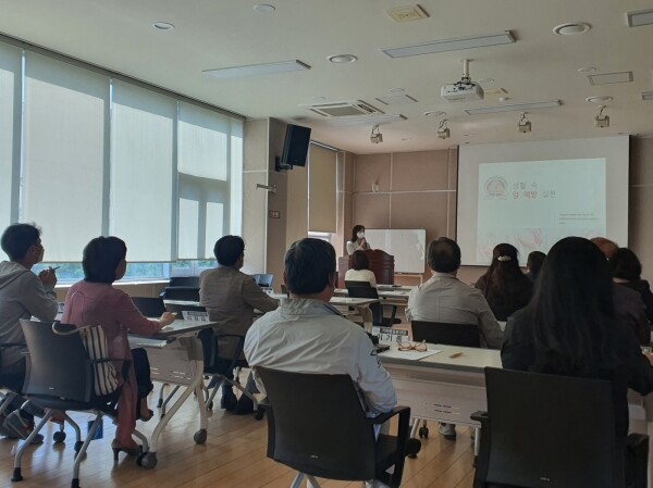이를 위해 5월 13일 오전 주민자치회 정기회의에 국립암센터 암예방사업부 책임연구원인 김병미 교수를 초대해 주민자치회 위원 대상으로 30분 간 생활 속에서 암 예방을 실천할 수 있는 방법에 대해 배웠다.