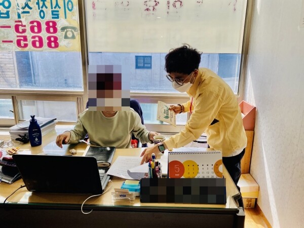 중앙동 행정복지센터 맞춤형복지팀 직원들은 해당 기관에 출장해 대표자에게 고용위기가구 발굴 안내문과 전화번호 스티커를 전달하며 적극적인 협조와 제보를 요청했다.