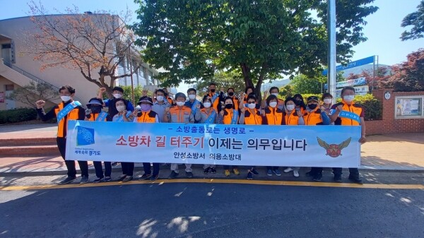 이날 캠페인에는 남·녀 의용소방대원 20여명이 참여해 ‘소방차 길 터주기’의 중요성을 홍보하고 주민들의 관심을 당부했다.