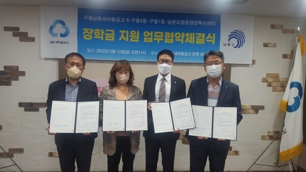 구월·남촌새마을금고는 이번 협약을 통해 저소득가정 자녀를 위한 장학금 1천만원을 기탁했다.