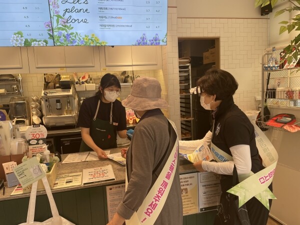 캠페인 참여자들은 투명페트병 분리배출 안내 문구가 새겨진 어깨띠를 착용하고 주거밀집지역과 인근 상가를 중심으로 홍보물을 전달하고 분리배출 방법 등을 안내했다.