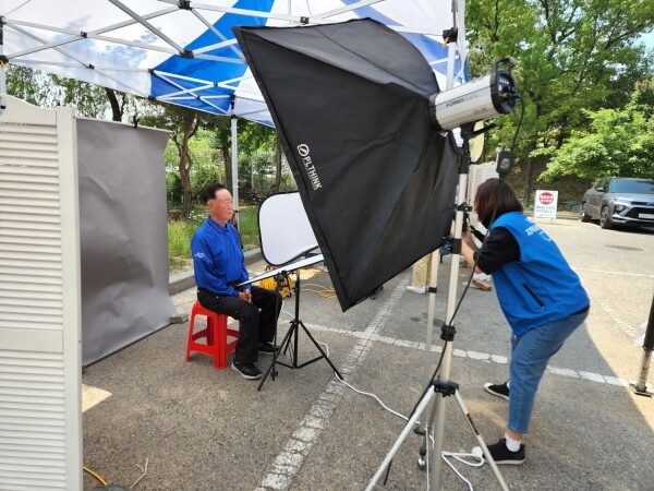 지난 4월 거동 불편 독거어르신과 중증장애인 가정을 직접 찾아가 이미용 서비스를 진행했던 것과 달리, 이번에는 연성동 행정복지센터 앞마당에 천막을 설치해 이·미용 서비스와 장수사진 촬영을 한 장소에서 동시에 진행했다.