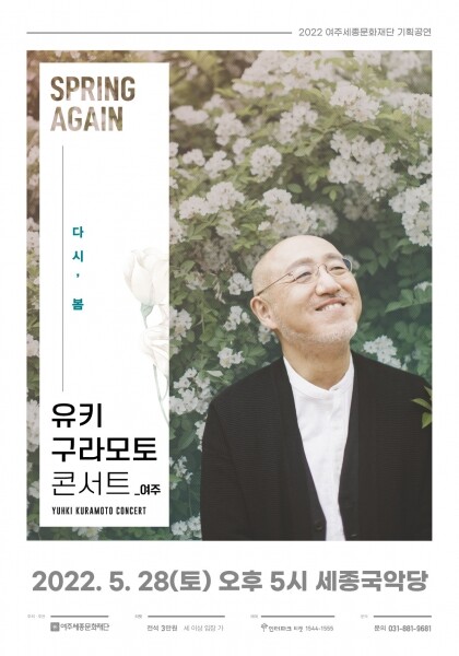 ‘유키 구라모토 콘서트 ? 다시, 봄’은 지난 2018년 따뜻했던 5월 여주세종문화재단 출범기념으로 여주시민을 만났던 유키 구라모토의 4년 만의 무대로 겨울이 지나면 다시 오는 봄처럼 힘든 시기를 겪고 희망찬 내일이 다시 오길 염원하는 연주회이다.