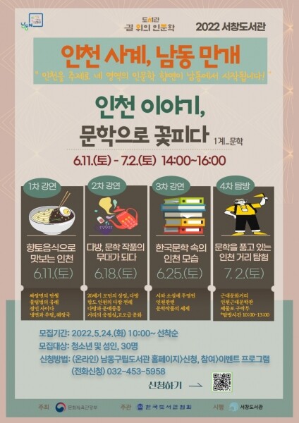 도서관 관계자는“이번 프로그램을 통해 남동구민이 지역 인문학으로 소통하고 생활 속 인문 공동체를 형성해 서창도서관에서 인문학이 지속적으로 운영되기를 바란다”고 밝혔다.