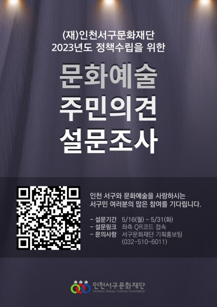 재단 담당자는 “이번 설문조사를 시작으로 연중 다양한 구민 참여 정책을 선보일 것”이라며 “구민 의견을 다각도로 반영해 구민과 함께하는 문화재단의 역할을 확고히 하겠다”고 말했다.