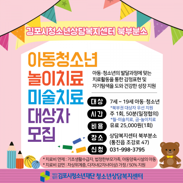 청소년진로상담본부 최규장 본부장은 “김포시청소년상담복지센터 북부분소의 치료사업 운영을 통해 상담의 접근성을 높이고 지역의 아동청소년이 언제든지 찾아올 수 있는 공간을 조성해 청소년의 심리건강 증진에 보탬이 되도록 하겠다”고 전했다.
