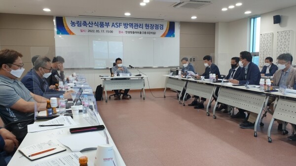 이날 정재환 농식품부 구제역방역과장 주재로 진행된 아프리카돼지열병 방역현장 점검에서는 7개 시·군별 ASF방역 추진현황 강화된 방역시설 설치 진행상황 향후 추진계획 등에 대한 논의가 집중적으로 이어졌다.