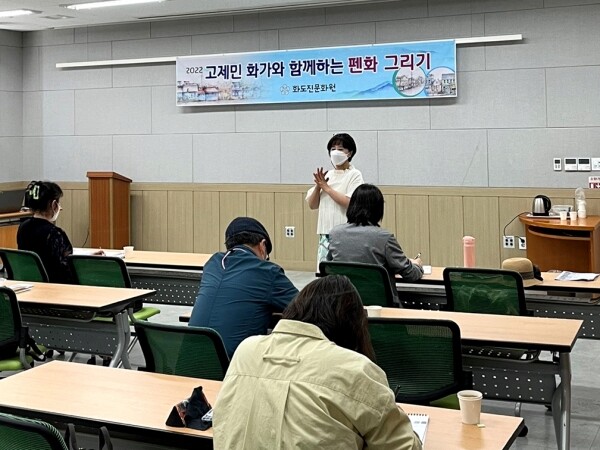 강사인 고제민 화가는 항구와 포구, 섬을 찾아다니며 그들의 삶의 궤적과 시간의 지층을 담아낸 작품을 그린 화가로 ‘엄마가 된 바다’, ‘인천 담다’, ‘인천 그리다’ 등 작품집을 출간하고 영화국제관광고등학교에서 30년 넘게 학생들에게 그림을 가르쳤다.