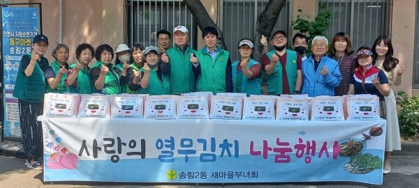 강임숙 송림2동 새마을부녀회장은 “어르신들이 환절기에 입맛을 돋우어 건강하게 보냈으면 하는 마음으로 진행했는데, 오늘 열무김치가 맛나게 담가져 기쁘다며 전달받으신 어르신께서도 기뻐하셨으면 좋겠다”고 말했다.