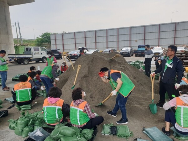 김포시 자율방재단, 여름철 침수피해 대비 모래마대 제작