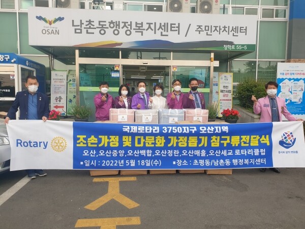 이번 행사는 국제로타리 3750지구 오산지역 주관으로 여름 및 겨울 이불, 베개가 포함된 침구류 20세트를 지원했으며 저소득 조손가정 및 다문화가정에 배부될 예정이다.