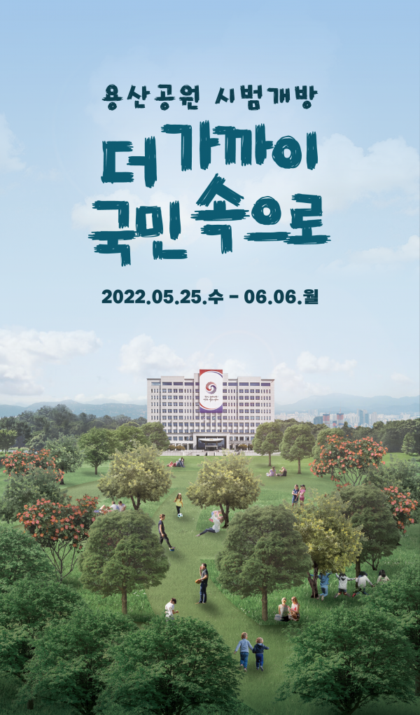 이번 시범개방은 국민의 정원으로 거듭날 용산공원 조성 과정에 국민의 의견을 경청하고 이후 공원 조성에 반영하기 위한 것으로 5월 25일부터 6월 6일까지 13일간 진행된다.