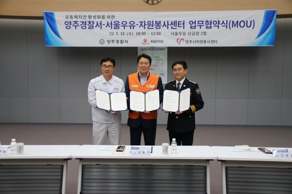 김용훈 센터장은 “관내 주민안전을 위해 양주경찰서 서울우유협동조합양주신공장과 뜻을 함께할 수 있어 기쁘게 생각한다”며 “이번 협약이 범죄 예방 활동뿐만 아니라 다양한 분야에서 긴밀한 협조 관계를 지속해 나가며 3개 기관이 조화롭게 상생하는 소중한 기회가 되길 기대한다”고 전했다.