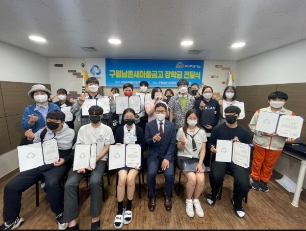 구월남촌새마을금고는 학교장 추천과 동 추천을 받은 중학생 10명에 각 30만원, 고등학생 14명에 각 50만원을 지급하는 장학증서를 전달하며 총 1,000만원의 장학금을 지급했다.