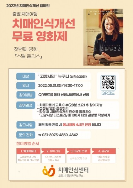 ‘출발치매여행’은 치매 관련 영화를 통해 치매에 대한 부정적 인식을 해소하고 치매 친화적 지역사회를 조성하는 영화제 프로그램이다.