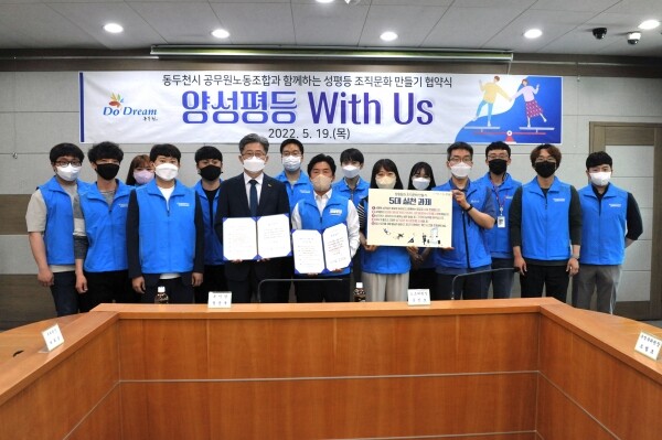 문진호 동두천시 공무원노동조합 위원장은 “양성평등은 존중과 배려가 있는 조직을 위해서도 꼭 필요하다”며 “인식의 전환이 개인행동은 물론 조직문화를 바꾸는 출발점이 될 것이고 우리 공직사회가 먼저 나서서 모범이 되어야 한다 동두천시청을 시작으로 회사와 가정, 지역사회에 이르기까지 평등한 조직문화가 확산되기를 기대한다”고 전했다