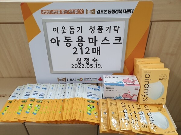 이에 김포본동 행정복지센터는 기부된 마스크를 북변동 소재의 그룹홈 소풍에 전달했다.