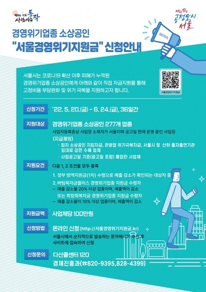 다만, 서울시 임차 소상공인 지킴 자금과 관광업 위기극복자금, 서울시 및 산하 출자출연기관 임대료 감면 수혜업체, 공고일 기준 폐업한 사업체 등은 지원에서 제외된다.