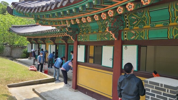 포스코건설 봉사단과 인천문화재 돌봄센터 직원들은 이른 아침부터 강화유수부 동헌 안팎을 청소하며 코로나19로 폐쇄되었던 고려궁지의 묵은 때를 벗겨냈다.