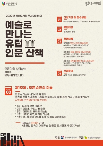 배창섭 부평구립도서관 본부장은 “코로나19로 해외출국이 어려운 상황에서 독서아카데미 강좌를 통해 새로운 문화적 경험을 충족하는 기회가 되길 바란다”고 말했다.