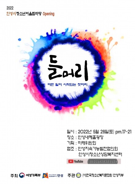 [뉴스써치] 청소년들의 다양한 끼와 재능을 발휘할 수 있는 ‘2022 안성시청소년어울림마당’ Opening ‘들머리’가 오는 5월 28일 오후 5시부터 9시까지 내혜홀광장에서 열린다.