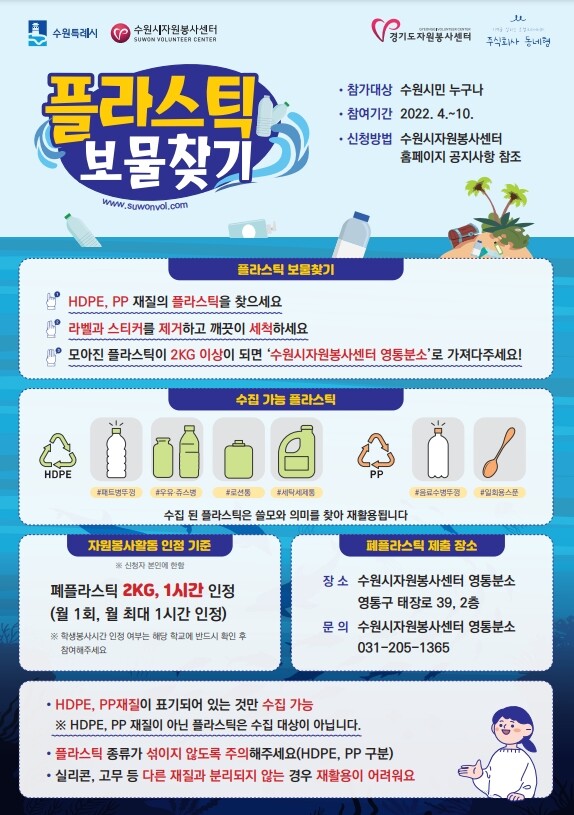 플라스틱은 수원시자원봉사센터 영통분소로 제출하면 된다.
