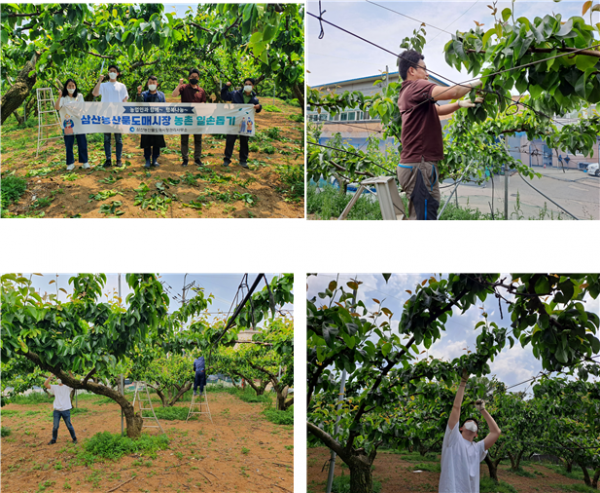 인천시 삼산농산물도매시장관리사무소는 본격적인 영농철을 맞아 관내 농가의 부족한 일손을 돕기 위해 배 적과 작업 봉사활동을 추진했다.