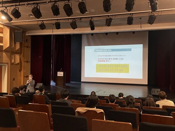 이번 교육은 올해 5월 19일부터 ‘공직자 이해충돌방지법’이 새롭게 시행됨에 따라 재단 임·직원의 부패 행위를 방지하고 청렴 의식을 제고하고자 추진했으며 한상철 국민권익위원회 청렴전문강사를 초청해 진행했다.