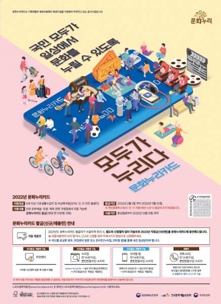 동 관계자는 "사회적 거리두기가 해제되어 오프라인 활동이 자유로운 만큼 영화 관람, 도서 구매, 스포츠 관람 등 문화생활 혜택을 알지 못해 이용하지 못하는 사례가 없도록 문화누리카드 이용안내에 최선을 다하겠다”고 말했다.