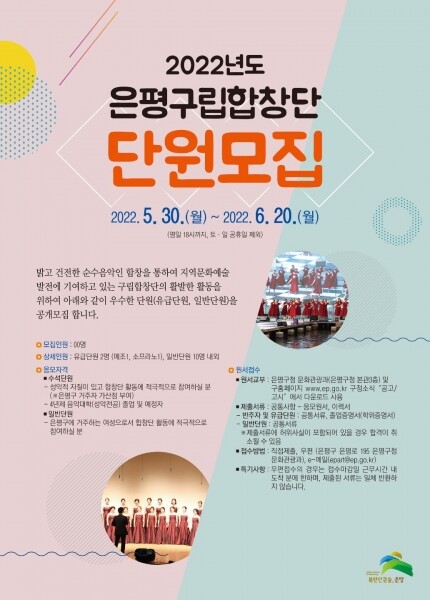 모집 자격은 은평구에 거주하는 여성으로 음악을 통한 봉사활동에 관심이 많고 노래에 소질이 있는 자는 누구나 지원이 가능하다.