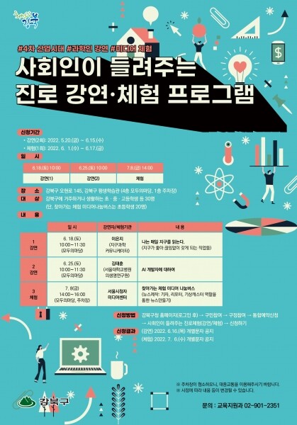 수강을 희망하는 학생은 6월 15일까지 강북구 홈페이지를 통해 신청하면 된다.