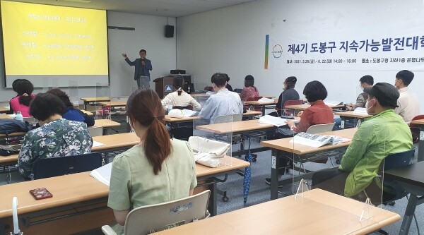 제5기 도봉구 지속가능발전대학은 올해 제정된 지속가능발전기본법 제정의 의미와 내용을 소개하고 지속가능발전의 개념과 역사, 장애인권, ESG 경영 등을 살펴본다.