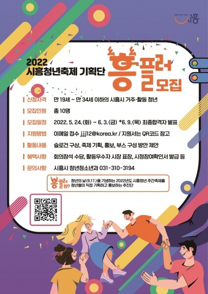 모집 기간은 5월 24일부터 6월 3일까지이며 시흥시 청년청소년과 담당자 이메일로 지원 서류를 제출하면 된다.