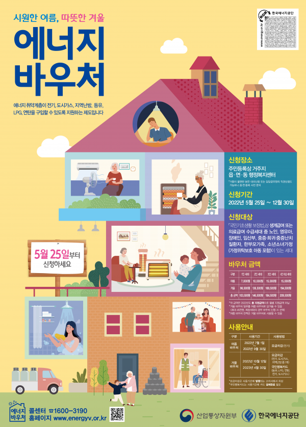 ‘에너지바우처’는 에너지이용에서 소외되기 쉬운 에너지 취약계층에 전기, 도시가스, 지역난방, 등유, LPG, 연탄 등을 구입할 수 있도록 바우처을 지급하는 사업이다.