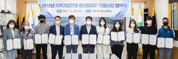 이번 협약식에는 참여기업으로 선정된 관내 중소기업 대표 5명과 해당 기업에서 신규 채용한 계양구 청년 5명이 참석한 가운데 사업 시행에 필요한 세부 사항이 담긴 협약서에 서명하며 협약사항을 성실히 이행할 것을 약속했다.