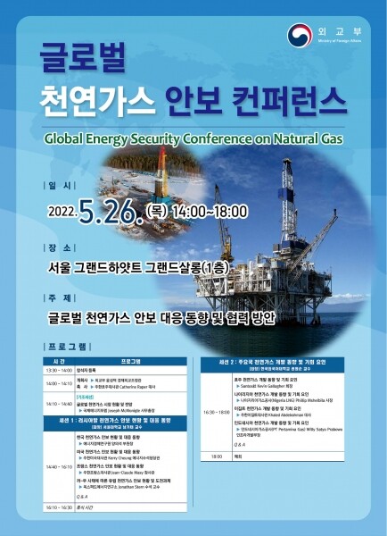 금번 행사는 신정부 들어 외교부에서 주최하는 첫 번째 에너지 안보 회의로서 최근 우크라이나 사태 등으로 인한 각국의 가스 안보 이슈 및 대응 동향을 살펴보는 한편 주요국의 가스 개발 기회 요인과 우리나라와의 협력 방안을 논의할 예정이다.