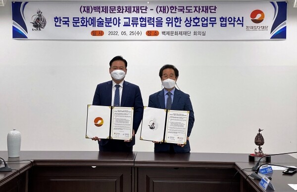 협약식에는 서흥식 한국도자재단 대표이사, 신광섭 백제문화제재단 대표이사 등이 참석했다.