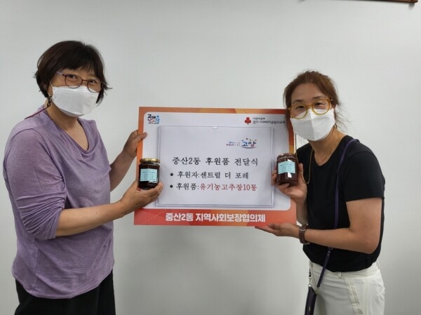남기준 중산2동장은 “지역 내 저소득 소외계층을 위해 정성이 담긴 고추장을 후원해 주셔서 감사드린다 앞으로 더욱 지역사랑 나눔문화 확산을 위해 노력하겠다”고 말했다.