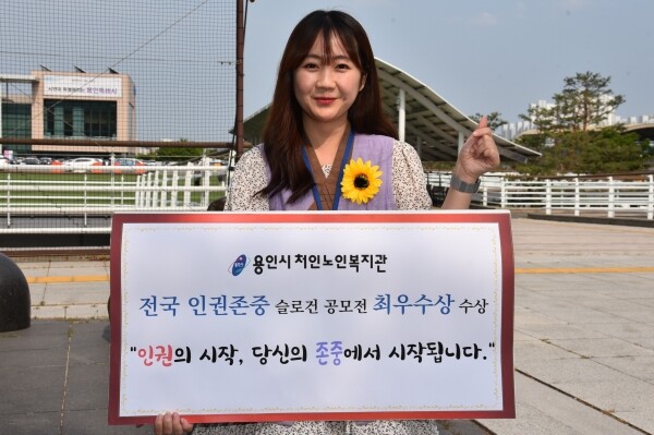 이번 공모는 사회복지 실천가의 안전과 인권존중을 위한 슬로건을 통해 노인복지현장에서 사회복지 실천가들의 인권이 존중 받을 수 있도록 인권 존중의 중요성, 상호존중 인권의식 개선을 목표로 슬로건 공모를 진행했으며 우리 복지관 종사자 김민아 사회복지사가 전국 1등 최우수상을 수상하는 영예를 안았다.