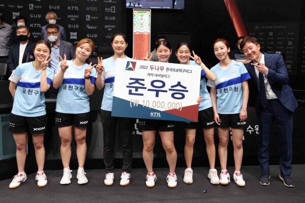 금천구청 여자탁구단은 1월 28일부터 5월 17일까지 진행된 2022 두나무 한국프로탁구리그에서 내셔널리그 정규리그 2위를 기록하며 상위 세 팀이 격돌하는 포스트시즌에 진출했다.