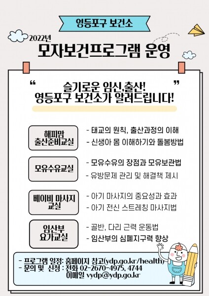 또한, 임신과 출산 후 산모의 비만관리와 체형 교정을 위한 ‘임산부 요가교실’과 ‘임산부 비만관리 교실’을 새롭게 신설해 운영한다.