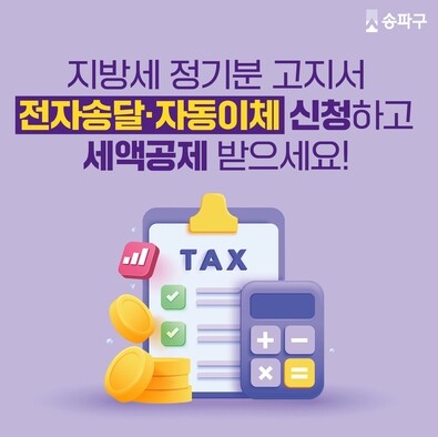 구 관계자는 “전자송달 및 자동이체는 고지서 분실 우려가 없고 납부까지 한 번에 해결할 수 있어 편리하다”며 “여기에 세액공제와 마일리지 적립 혜택은 물론 종이사용을 줄여 환경보호까지 실천할 수 있으니 많은 참여 바란다”고 전했다.