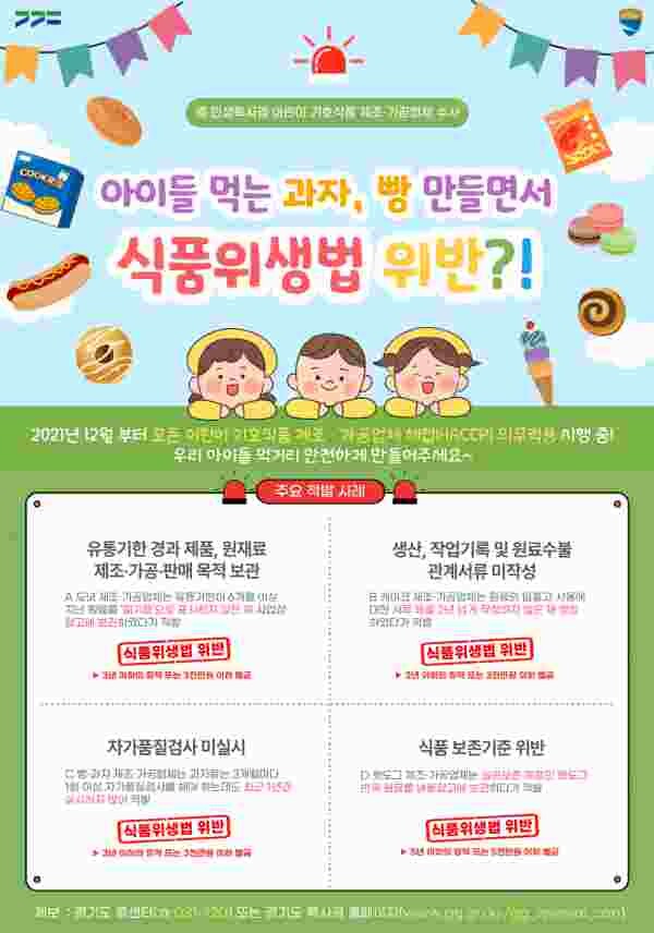 김민경 경기도 민생특별사법경찰단장은 “어린이들이 안심하고 구매할 수 있도록 적발된 업체들은 관련 규정에 따라 강력히 처벌하겠다”며 “도민의 먹거리 안전에 대한 인식변화와 불법행위 근절을 위해 최선을 다하겠다”고 말했다.