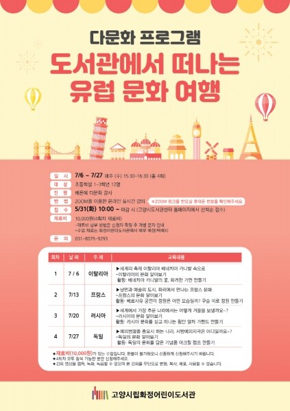 [뉴스써치] 고양시 화정어린이도서관이 다문화 프로그램 ‘도서관에서 떠나는 유럽 문화 여행’을 운영한다.