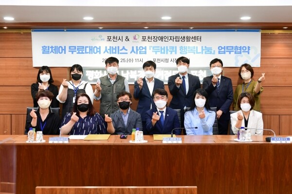 [뉴스써치] 포천시는 지난 25일 시정회의실에서 휠체어 무료대여 서비스 사업 ‘두바퀴 행복나눔’ 업무 협약식을 가졌다.
