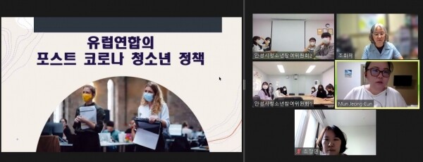 이번 화상회의에서는 유럽 현지 대학생이 유럽연합의 포스트 코로나 청소년 정책 중 ‘2022년 유럽연합 청년의 해’ 정책에 대해 자세히 설명했다.