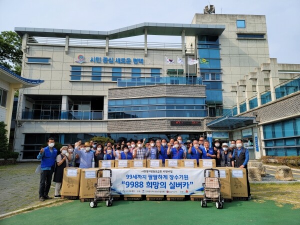 진위면 지역사회보장협의체는 거동이 불편한 저소득층 어르신들을 발굴해 보행에 도움을 주는 실버카 37대를 이장님들의 도움을 받아 각 마을에 전달했다.
