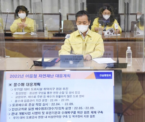 특히 풍수해로 피해가 발생할 수 있는 하천, 하수, 도로 관리부서는 예방 시설 작동점검, 하천 등의 준설, 배수시설 확보 등의 대응 계획을 보고하며 폭염에 대비한 무더위쉼터와 폭염 저감시설 확충, 취약계층 보호 및 지원 방안 마련에 의견을 모았다.
