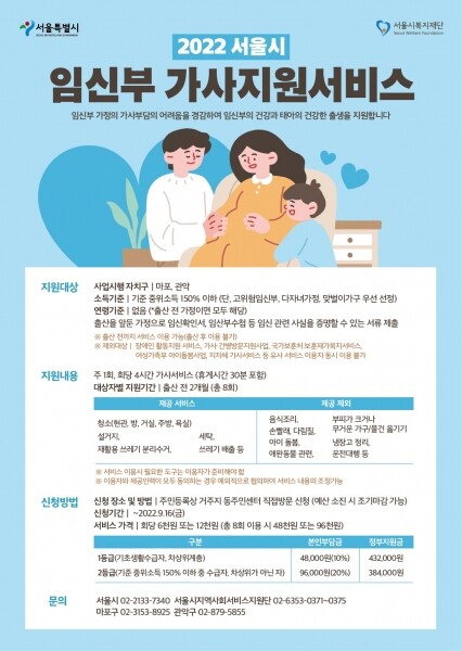 ‘2022년 서울시 지역사회서비스투자사업 시범사업’ 시행자치구로 선정되어 진행되는 이번 사업은 임신으로 가사활동이 어려운 임신부 가정의 가사부담을 경감하고 임신부와 태아의 건강한 출생을 지원하고자 기획됐다.